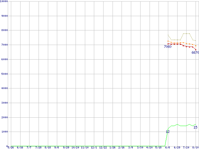| Celeron 430 (1.8GHz)の価格推移 | | | (2006年5月26日~2007年8月10日) |