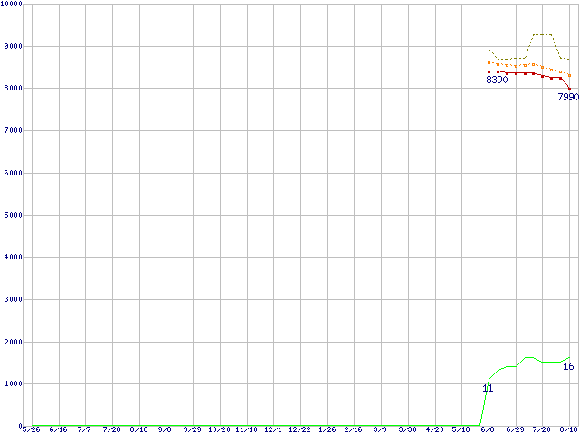 | Celeron 440 (2.0GHz)の価格推移 | | | (2006年5月26日~2007年8月10日) |