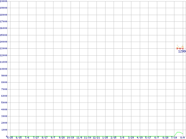 ※このグラフは過去のデータも税率5%相当に調整した税込み相当額のグラフです。 税率変更や、総額表示方式導入(2004年4月)の影響は除いています。 | | | ●凡例 | 最安値 (点線部は販売店未確認 または未調査) | 平均値 | 最高値 | ショップ数 |