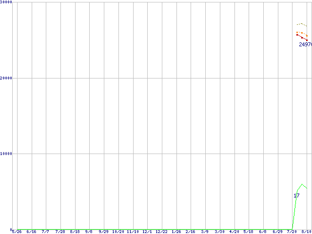 | Core 2 Duo E6750 (2.66GHz,L2 4MB)の価格推移 | | | (2006年5月26日~2007年8月10日) |