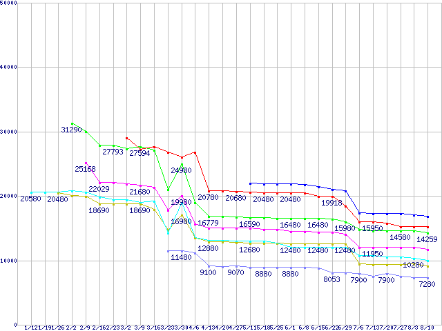 | Socket AM2 (FSB 1000MHz,Dual Core,TDP65W)の最安値推移 | | | (2007年1月12日~2007年8月10日) |
