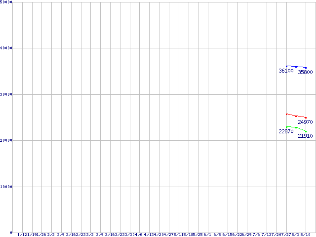 | LGA775 (FSB 1333MHz,Dual Core,EM64T対応,TDP 65W)の最安値推移 | | | (2007年1月12日~2007年8月10日) |
