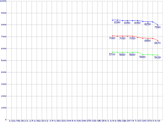 LGA771(FSB 1066MHz,Quad Core,L2 4MB×2,TDP 50W)の最安値推移