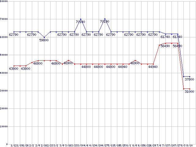 LGA771(FSB 1333MHz,Quad Core,L2 4MB×2,TDP 80W)の最安値推移