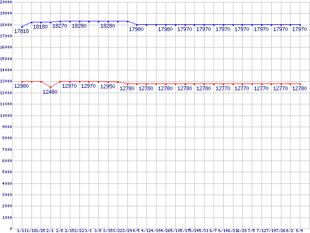 WD Raptor (10000rpm,SATA 1.5Gb/s,16MB,NCQ)の最安値推移