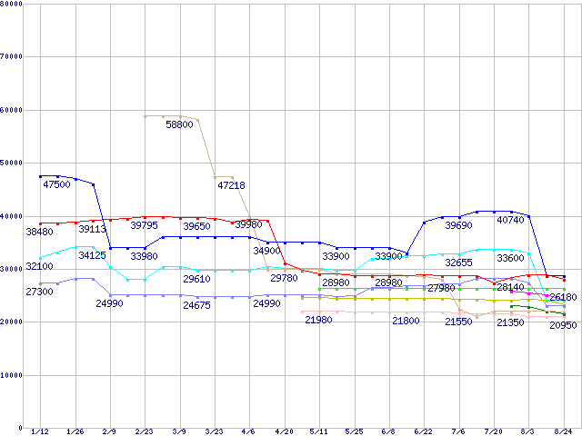 CPU主要製品(最安値3万円~6万円未満)の最安値推移
