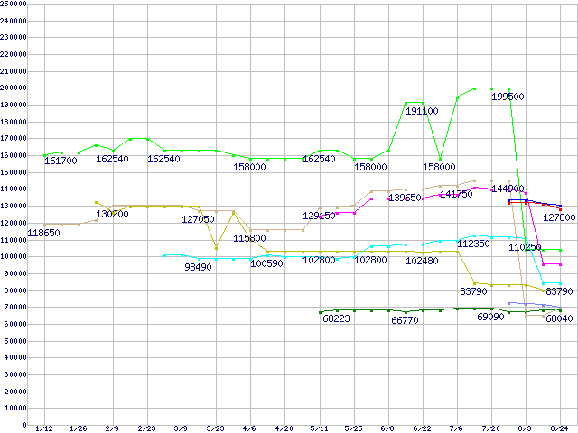 CPU主要製品(最安値6万円以上)の最安値推移