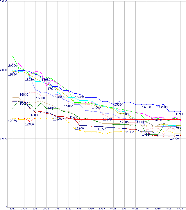※製品名をクリックすると個別のグラフを表示します ※点線部は販売店が確認できなかった、または調査データがないことを示します |