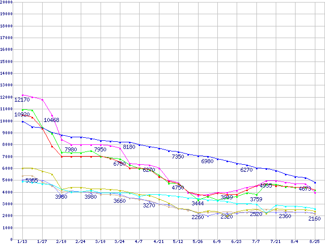 メモリ主要製品(最安値5千円~1万円未満)の最安値推移