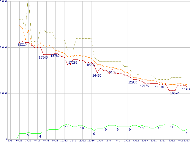 | ST3400620A (400GB,16MB)の価格推移 | | | (2006年6月8日~2007年8月23日) |