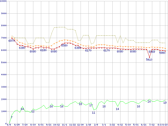 | HDS721616PLA380 (160GB,8MB)の価格推移 | | | (2006年6月8日~2007年8月23日) |