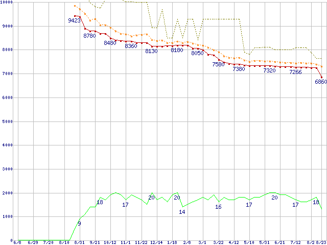 | HDT725025VLA380 (250GB,8MB)の価格推移 | | | (2006年6月8日~2007年8月23日) |