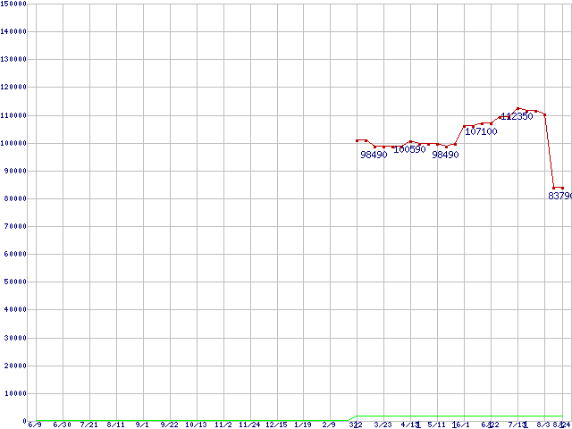 | Opteron 2220 (2.8GHz)の価格推移 | | | (2006年6月9日~2007年8月24日) |