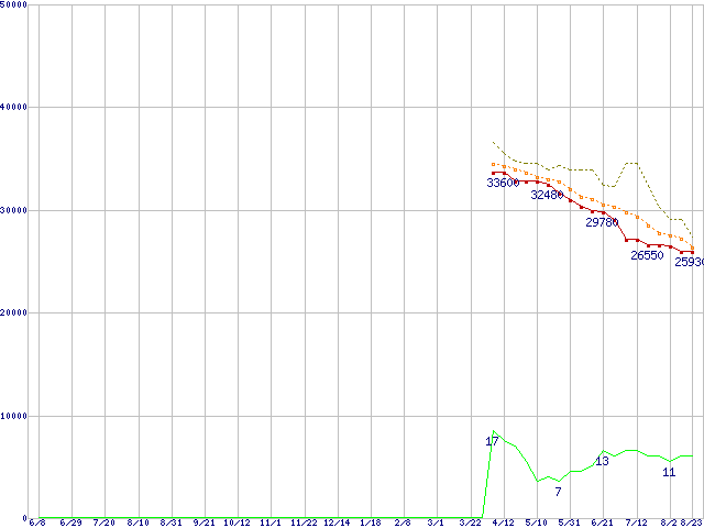 | HDS721075KLA330 (750GB,32MB)の価格推移 | | | (2006年6月8日~2007年8月23日) |