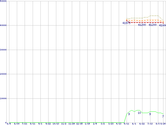 | Core 2 Duo T7500 (2.2GHz,L2 4MB)の価格推移 | | | (2006年6月9日~2007年8月24日) |