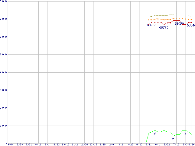 | Core 2 Duo T7700 (2.4GHz,L2 4MB)の価格推移 | | | (2006年6月9日~2007年8月24日) |