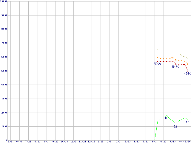| Celeron 420 (1.6GHz)の価格推移 | | | (2006年6月9日~2007年8月24日) |