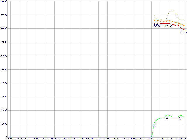 | Celeron 440 (2.0GHz)の価格推移 | | | (2006年6月9日~2007年8月24日) |
