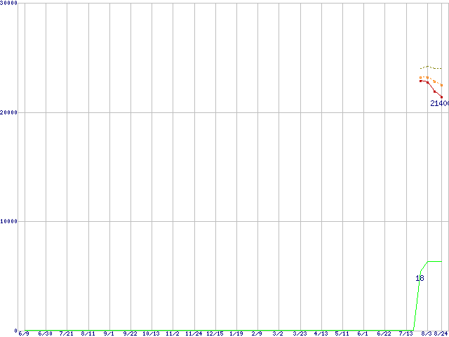 | Core 2 Duo E6550 (2.33GHz,L2 4MB)の価格推移 | | | (2006年6月9日~2007年8月24日) |