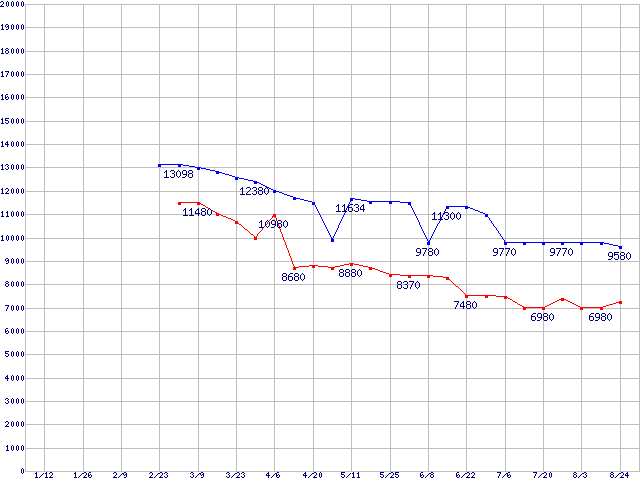 Socket AM2 (FSB 1000MHz,Dual Core,TDP65W)の最安値推移