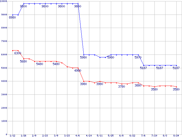 Socket AM2 (FSB 800MHz)の最安値推移