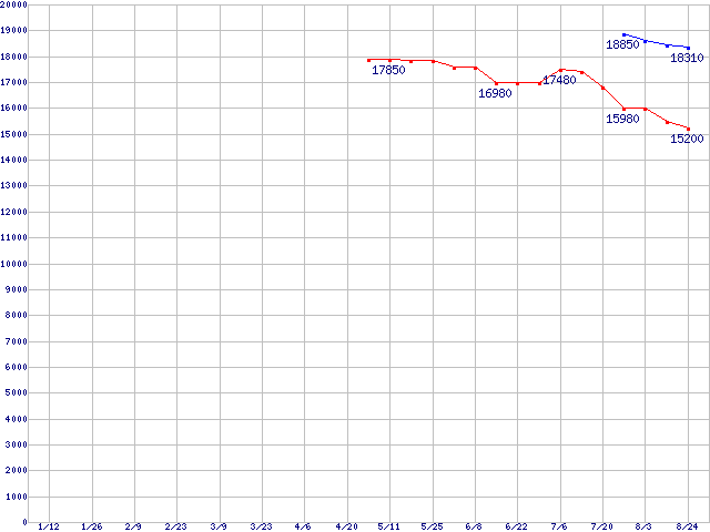 FSB 800MHz対応Core 2 Duo向けSocket (FSB 800MHz,Dual Core,EM64T対応)の最安値推移