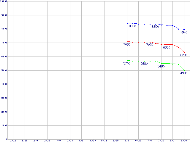 LGA771(FSB 1066MHz,Quad Core,L2 4MB×2,TDP 50W)の最安値推移
