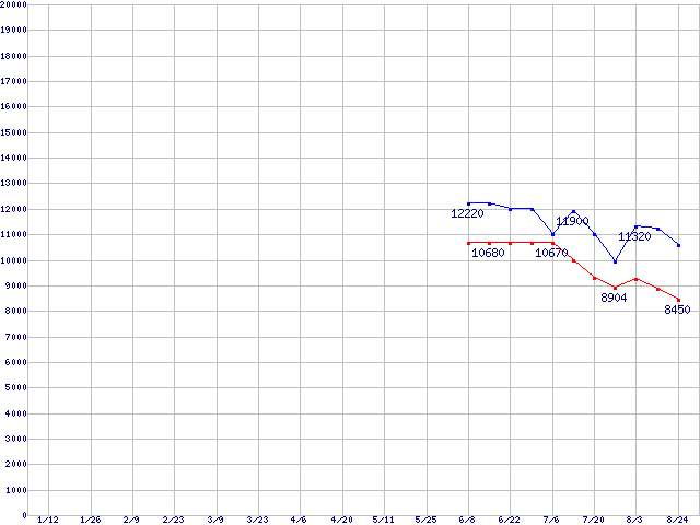 Socket F (FSB 1000MHz,L2 1MBx2,Dual Core,TDP 95W)の最安値推移