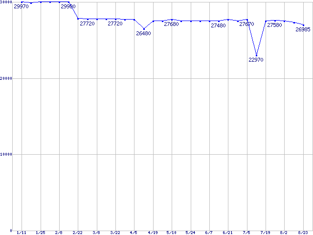 WD Raptor (10000rpm,SATA 1.5Gb/s,16MB,TLER)の最安値推移