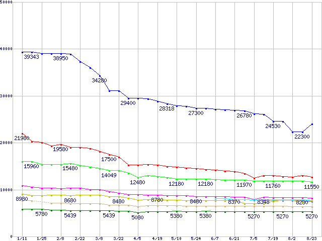 Deskstar 7K160 (7200rpm,Ultra ATA/133,8MB)の最安値推移