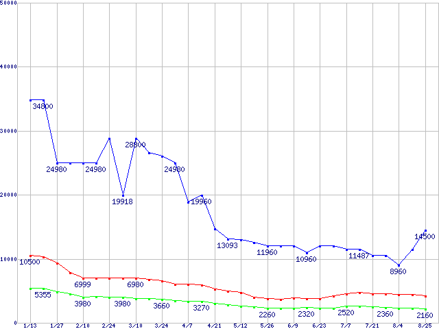 PC3200(DDR400) DDR SDRAM DIMMの最安値推移