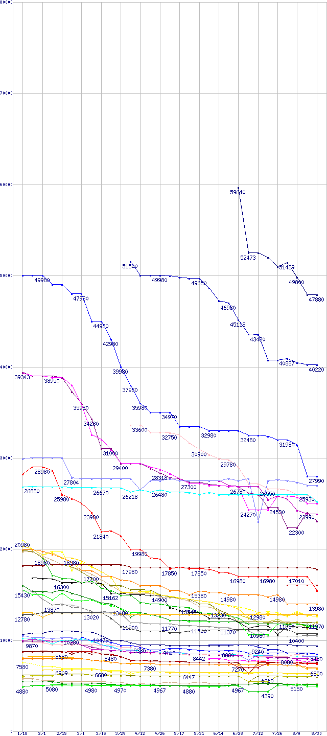 | HDD主要製品の最安値推移 | | | (2007年1月18日~2007年8月30日) |