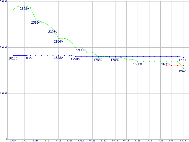 HDD主要製品(最安値1万5千円~2万円未満)の最安値推移