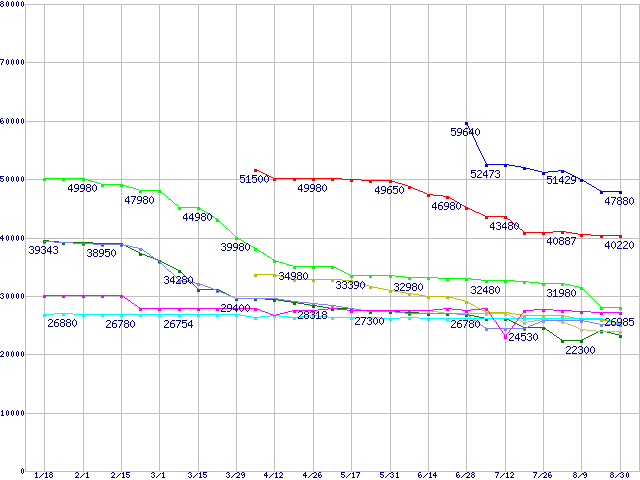 HDD主要製品(最安値1万5千円~2万円未満)の最安値推移