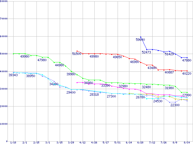 HDD主要製品(最安値1万円未満)の最安値推移