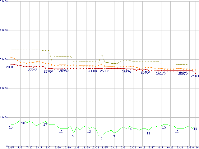 | WD1500ADFD (150.0GB)の価格推移 | | | (2006年6月15日~2007年8月30日) |