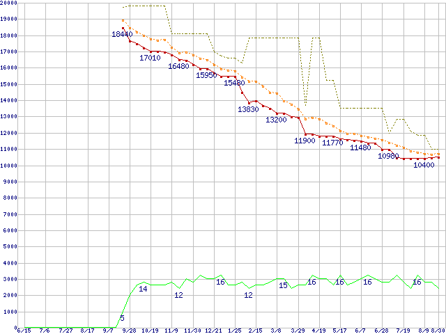 | HDT725040VLA360 (400GB,16MB)の価格推移 | | | (2006年6月15日~2007年8月30日) |