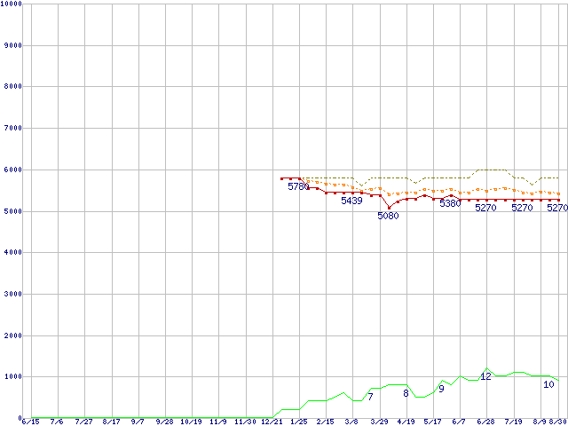 | ST380815AS (80GB,8MB)の価格推移 | | | (2006年6月15日~2007年8月30日) |