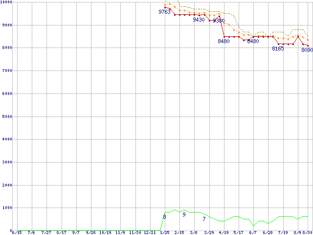 | HD321KJ (320GB,16MB)の価格推移 | | | (2006年6月15日~2007年8月30日) |