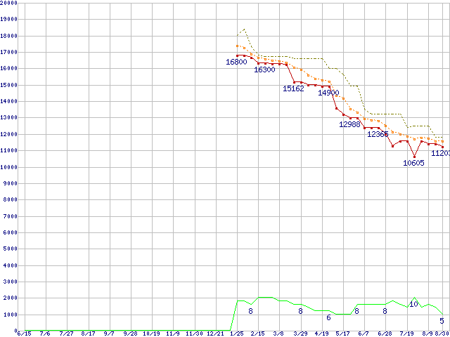 | HD501LJ (500GB,16MB)の価格推移 | | | (2006年6月15日~2007年8月30日) |