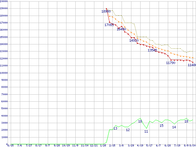 | WD5000AAKS (500GB)の価格推移 | | | (2006年6月15日~2007年8月30日) |