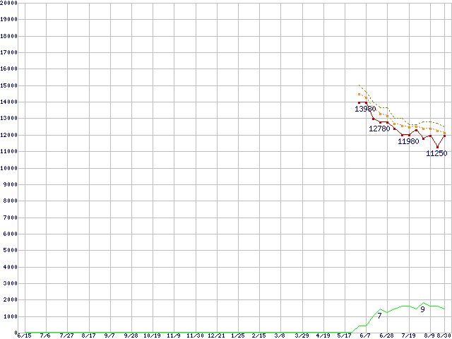 | WD5000AAJB (500GB)の価格推移 | | | (2006年6月15日~2007年8月30日) |
