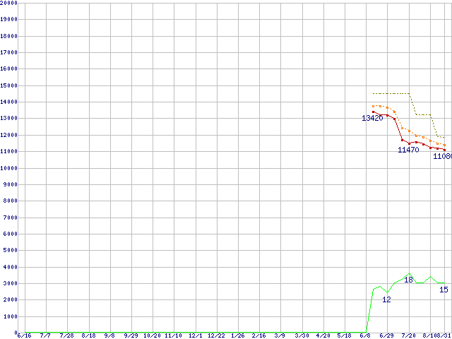 | Athlon X2 BE-2350 (2.1GHz,L2 512KB×2,TDP 45W)の価格推移 | | | (2006年6月16日~2007年8月31日) |