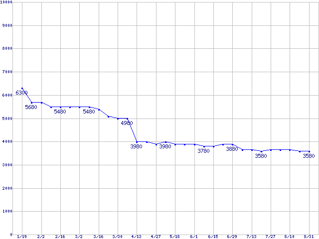 LGA775 (FSB 800MHz,L2 2MB,Hyper-Threading,EM64T対応)の最安値推移