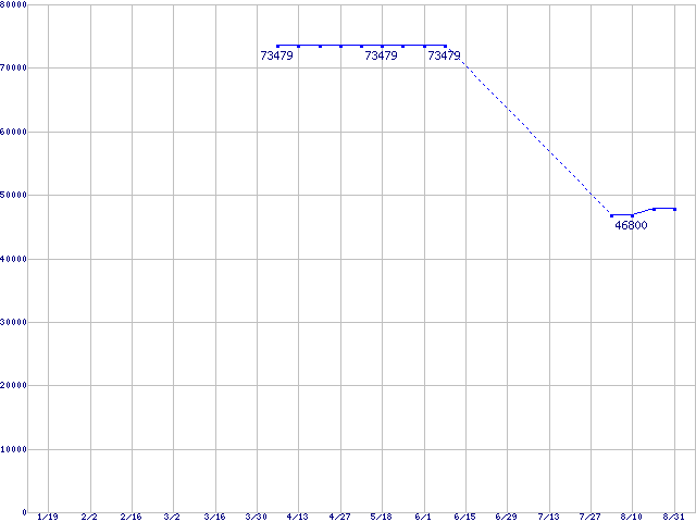 | LGA771(FSB 1066MHz,Quad Core,L2 4MB×2,TDP 50W)の最安値推移 | | | (2007年1月19日~2007年8月31日) |