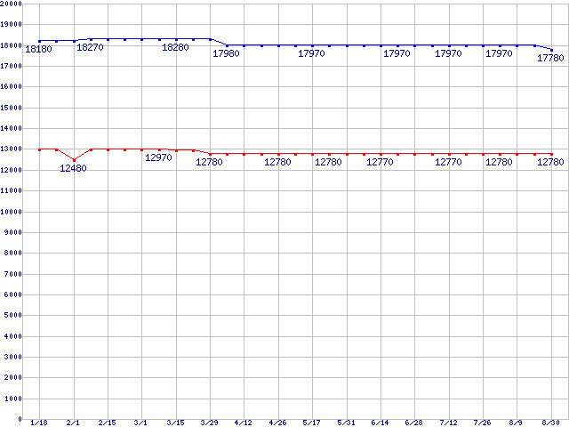 WD Raptor (10000rpm,SATA 1.5Gb/s,16MB,NCQ)の最安値推移