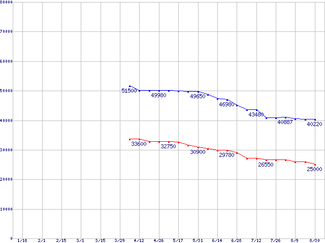 Deskstar T7K500 (7200rpm,SATA 3Gb/s)の最安値推移