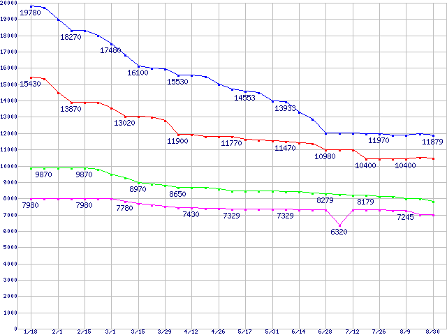 Deskstar 7K160 (7200rpm,Ultra ATA/133,8MB)の最安値推移