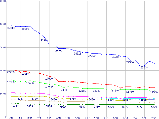 Deskstar 7K160 (7200rpm,Ultra ATA/133,8MB)の最安値推移