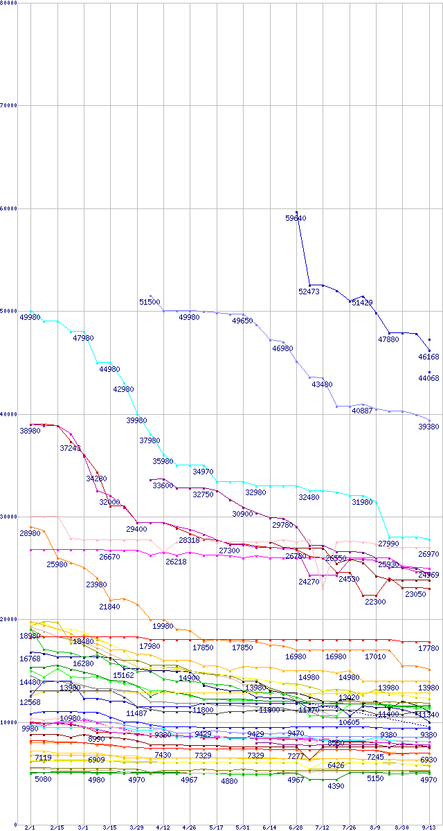 | HDD主要製品の最安値推移 | | | (2007年2月1日~2007年9月13日) |